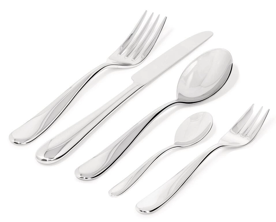 De Alessi Nuovo Milano bestekset is 30-delig en van hoogwaardig gepolijst 18/10 roestvrij staal. Het bestek is ontworpen door Ettore Sottsass en heeft een mooi rond ontwerp.