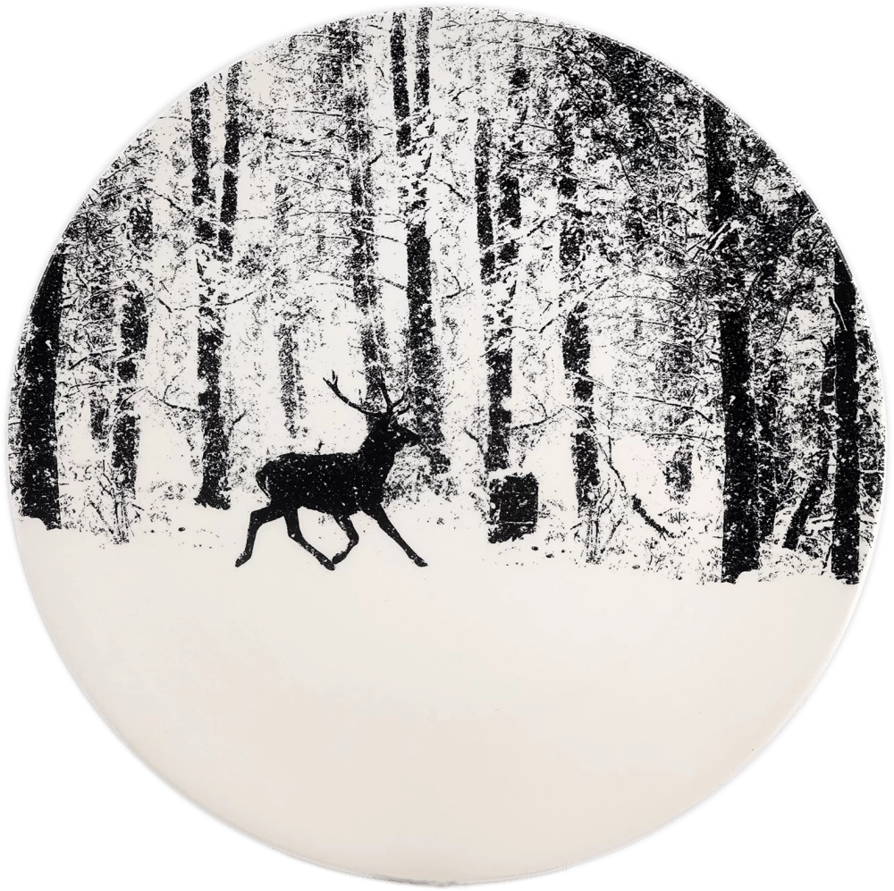 De dierenfoto’s van Georges Carillo verfraaien het nieuwe servies van de collectie Chambord en benadrukken de natuur van Sologne. De combinatie van zwart en wit geeft charme en koninklijkheid aan dit tijdloze van aardewerk gemaakte tafelservies. Het Gien Chambord taartplateau benadrukt de “koning van het bos van Chambord”, geaccentueerd met een zwart handgeschilderd draad. Het taartplateau heeft een diameter van 30 cm.