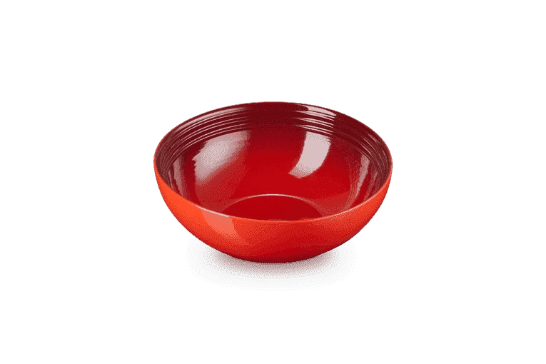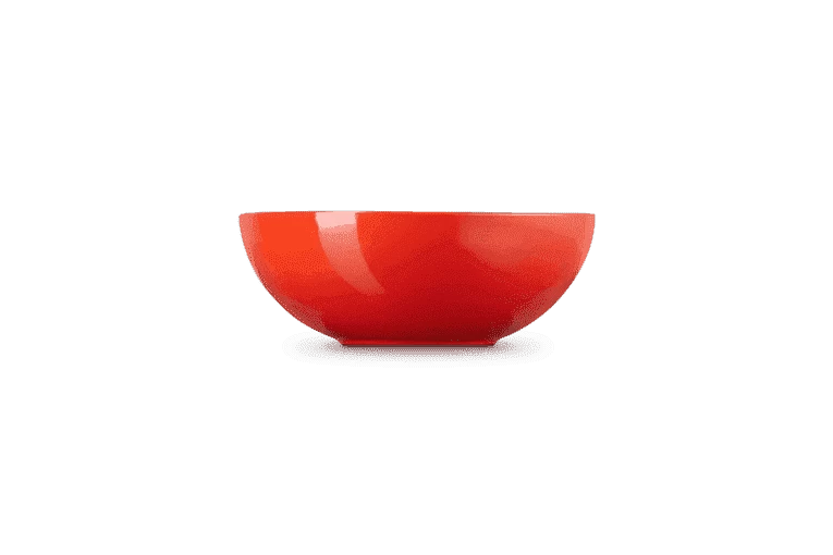De ronde schaal van Le Creuset is gemaakt van kersrood geglazuurd aardewerk. De diameter van de schaal is 24 cm en heeft een inhoud van 2,2 liter. Gebruik de schaal om bijvoorbeeld een salade in te serveren.