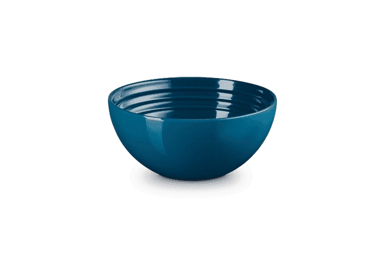 Het ronde schaaltje van Le Creuset is gemaakt van deep teal, donker groenblauw, geglazuurd aardewerk. De diameter van het schaaltje is 12 cm en heeft een inhoud van 330 ml. Gebruik de schaal om bijvoorbeeld snacks, hapjes of dipsausjes in te serveren.