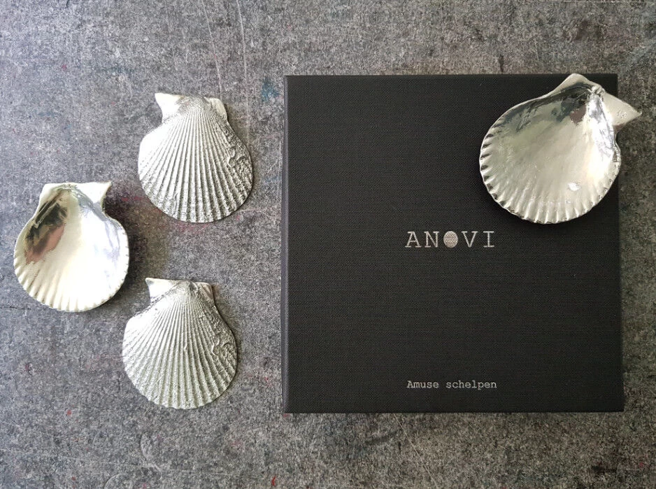 De Oldenhof amuseschelpen zijn gemaakt van gepolijst zilvertin. Het zuiveren tin wordt ambachtelijk gegoten in Nederland. Gebruik de amuseschelpen voor het eten van diverse amuses.
