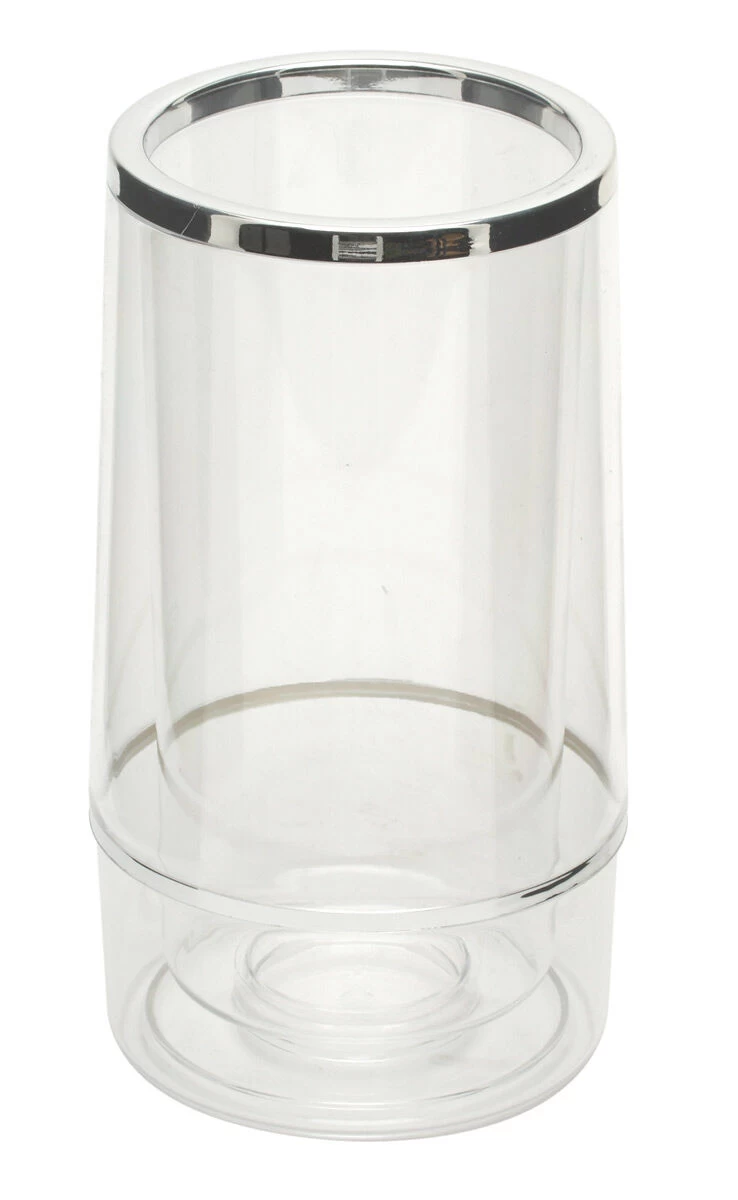 Met deze wijnkoeler van Oldenhof blijft uw wijn extra lang koel. De dubbelwandige wijnkoeler is van transparant BPA-vrij kunststof en heeft een diameter van 11,5 cm. De hoogte is 23 cm.
