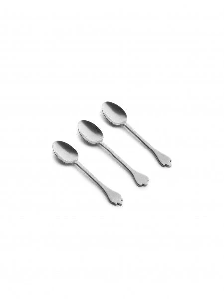 De Serax Merci Mix 1-2-3 espressolepels zijn gemaakt van roestvrij staal dat een stonewash-behandeling heeft gehad. Elk van de drie delen heeft een ander einde van de handgreep.