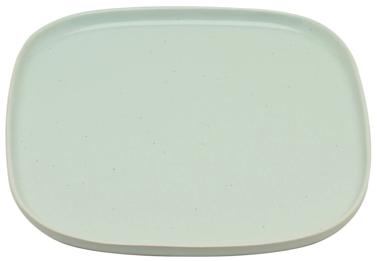 Het vierkante Serax Terres de Rêves bord heeft een lengte en breedte van 25,5 cm en een hoogte van 1,5 cm. Het van stoneware gemaakte bord is geglazuurd met lichtblauw email.